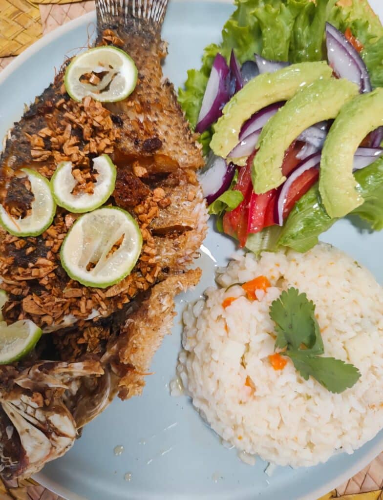 - Filete de pescado capeado (acompañado de salsa mexicana)